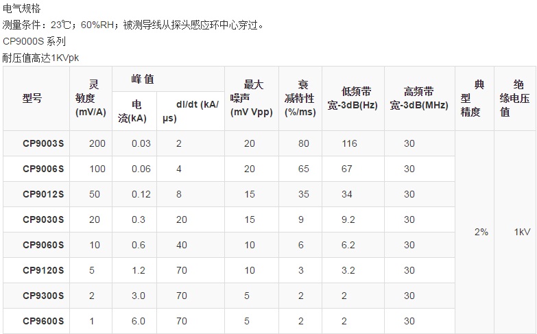 CP9000S系列探头感应环细小柔软,外径典型值1.6mm(1.7mmMax),耐压值高达1kVpk,非常适合MOSFET,IGBT器件管脚电流测量(TO-220,TO-47封装)、电容纹波电流测量等小封装器件电流测量。